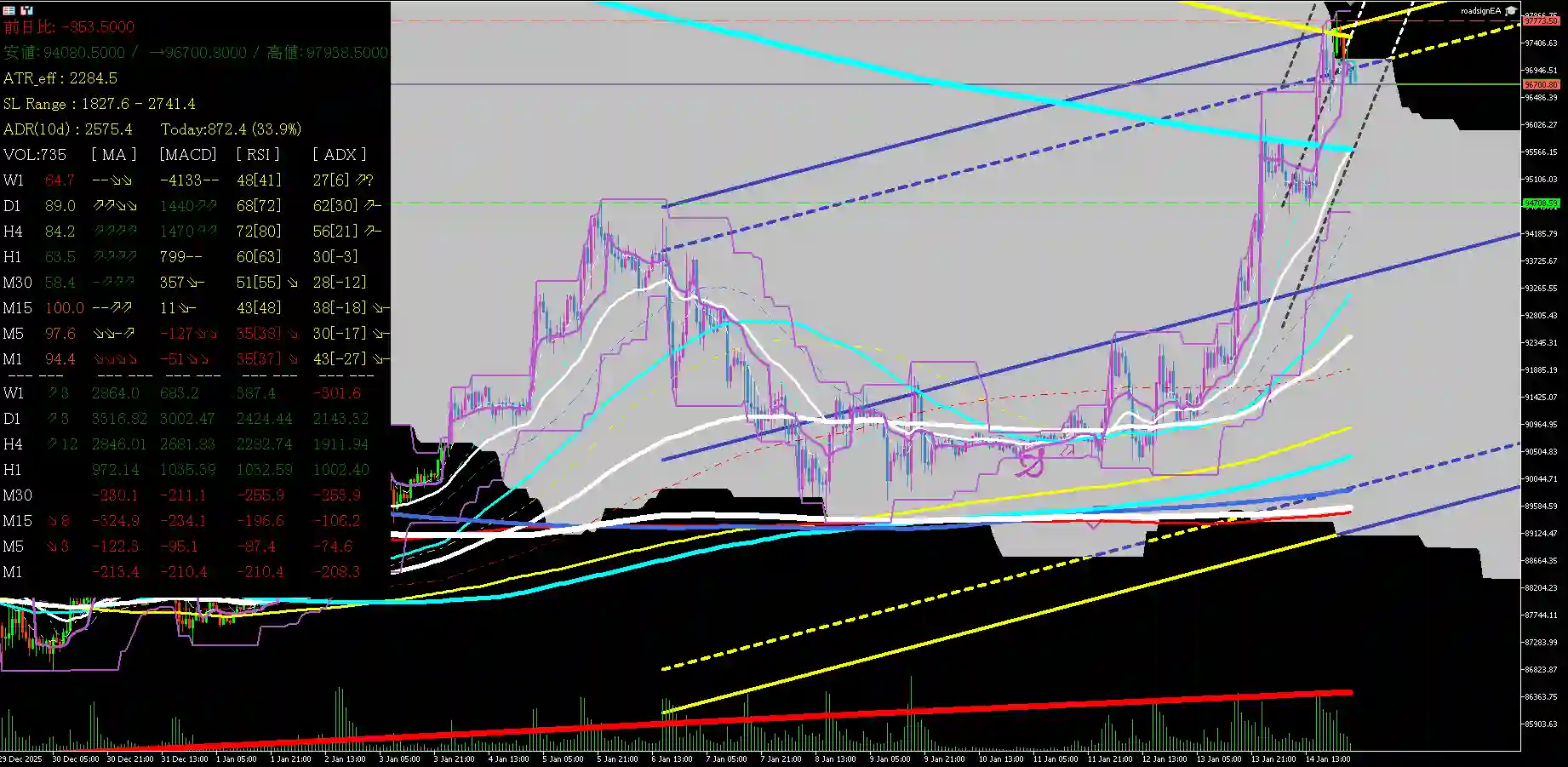 【2026年1月15日 BTCUSD完全レポート】上昇トレンド継続も高値圏警戒|今後は押し目待ち戦略が有効