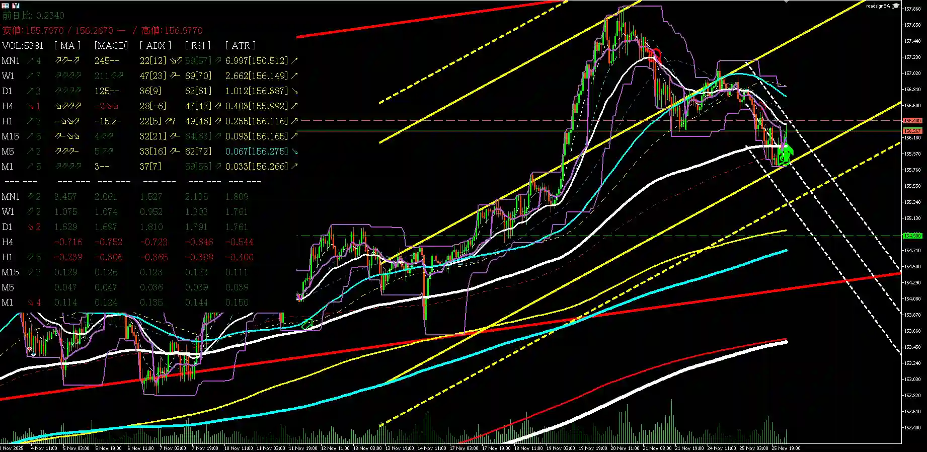 → **テクニカル単体では「153前半は押し目買い候補だが、154.5〜155 では利確・ショートも検討されやすいゾーン」**というバランス。